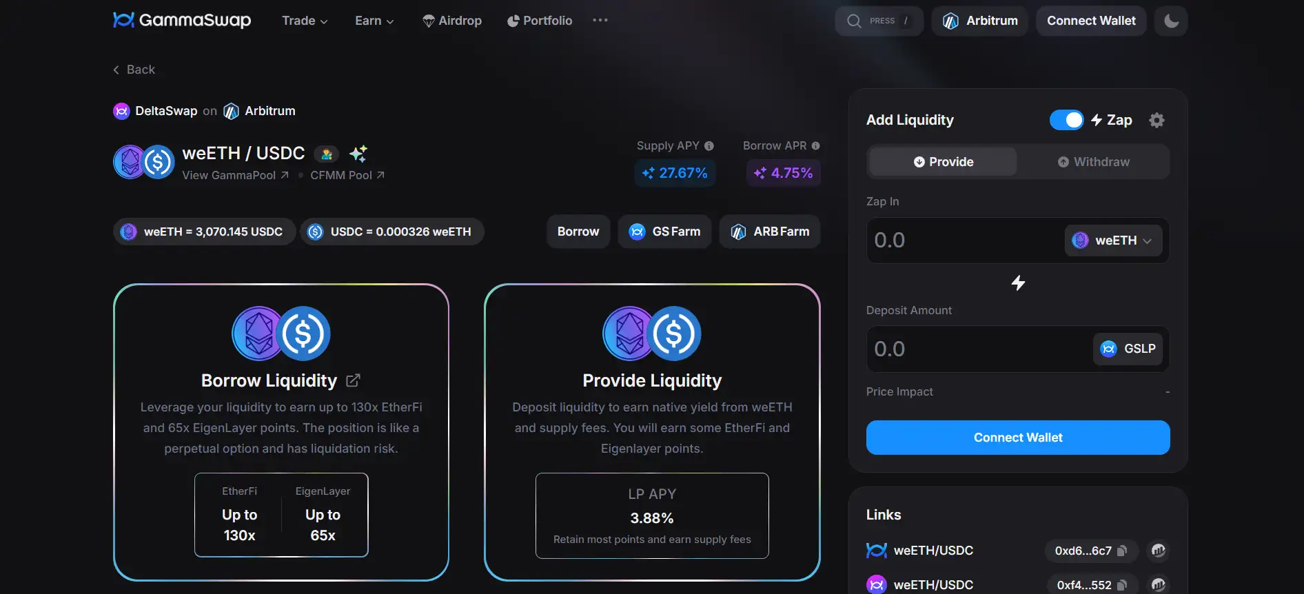 - Borrowing and Lending of Liquidity: By allowing liquidity to be borrowed or lent with collateral, GammaSwap introduces a unique financial instrument to the DeFi ecosystem.