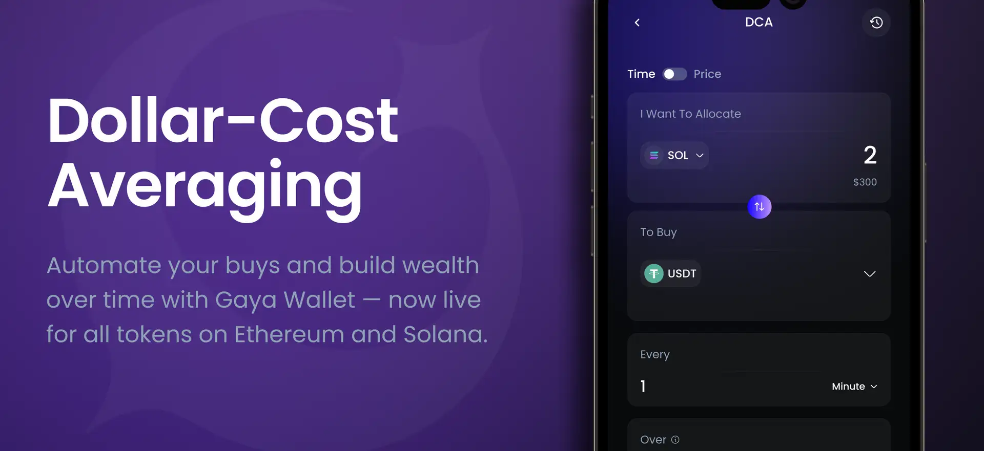 Yes. Gaya Wallet features a built-in DCA engine (Dollar Cost Averaging) that lets users schedule automatic crypto buys. You can set how often you want to invest (daily, weekly, etc.) and let the wallet handle the rest. This makes it easier to build a crypto portfolio over time without worrying about market timing. Visit Gaya Wallet to start automating your buys today.