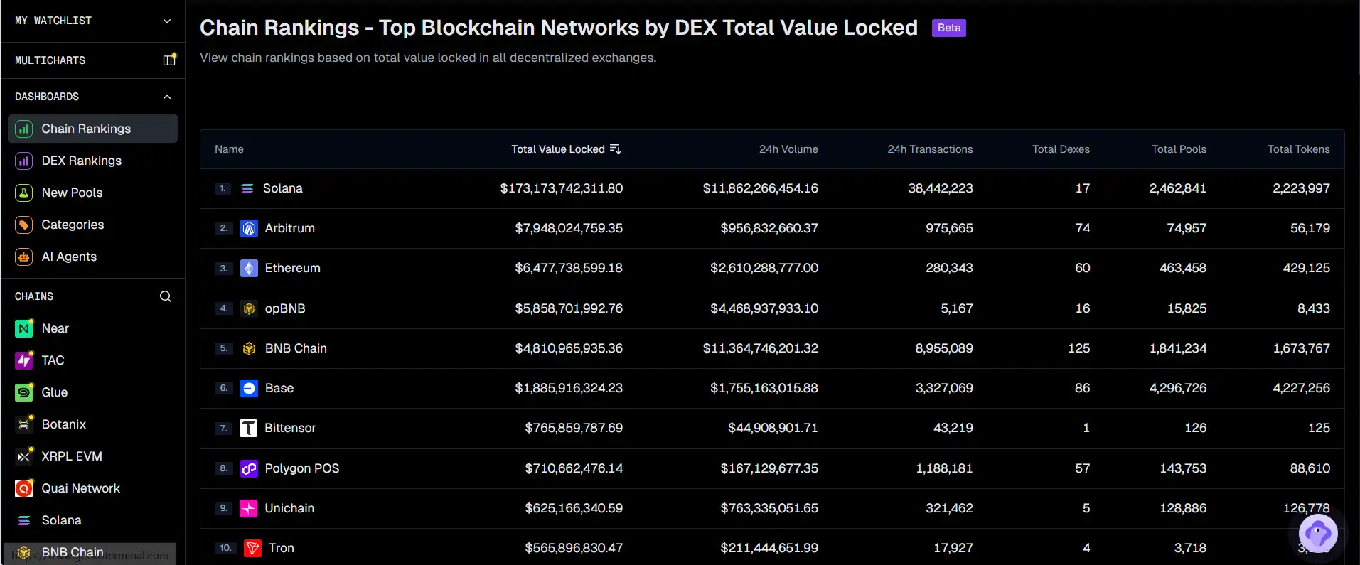 Whether you're interested in watching new pool launches, identifying trending DeFi tokens, or analyzing activity across networks like Solana, Ethereum, Arbitrum, BNB Chain, and more, GeckoTerminal is a single source of truth for real-time DEX intelligence. Users can also utilize its Public API to integrate live market data into their own apps and dashboards, making it a go-to platform for anyone building or trading in the Web3 ecosystem.