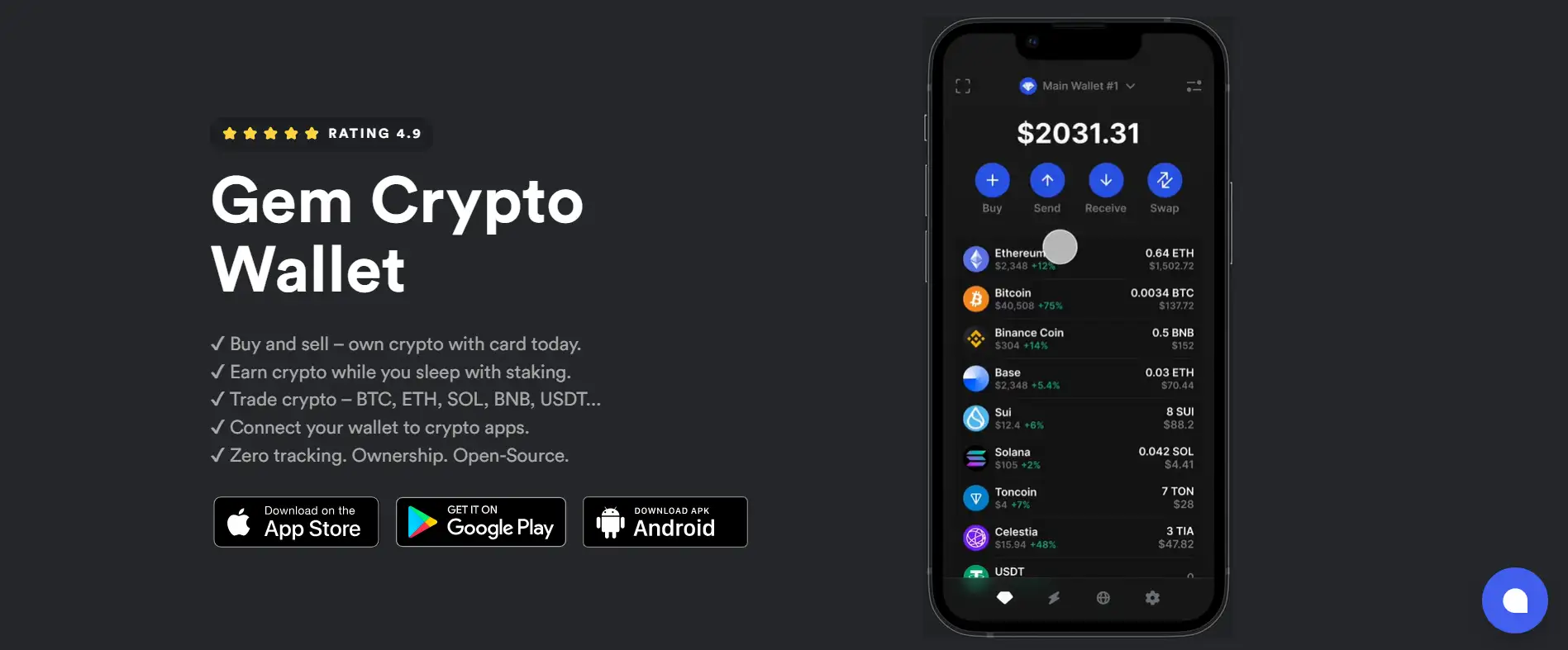 Gem Wallet is a privacy-first, multichain crypto wallet designed for secure and seamless interaction with Web3. Supporting top assets like BTC, ETH, SOL, BNB, USDT, and thousands more, it enables users to buy, swap, stake, send, and store digital assets without compromising personal data. Unlike custodial wallets, Gem Wallet is fully open-source and built by a community committed to decentralization and security.