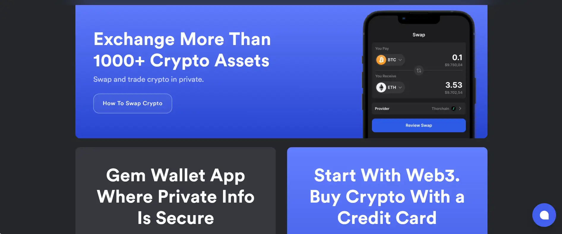 Gem Wallet’s feature set includes cross-chain swaps with providers like THORChain, Uniswap, Jupiter, and PancakeSwap, delivering the best rates without sign-ups or hidden fees. Through strategic integrations with Mercuryo, users can buy crypto with a credit card in over 100 countries. The wallet also includes NFT support, allowing users to store and trade their collectibles securely.