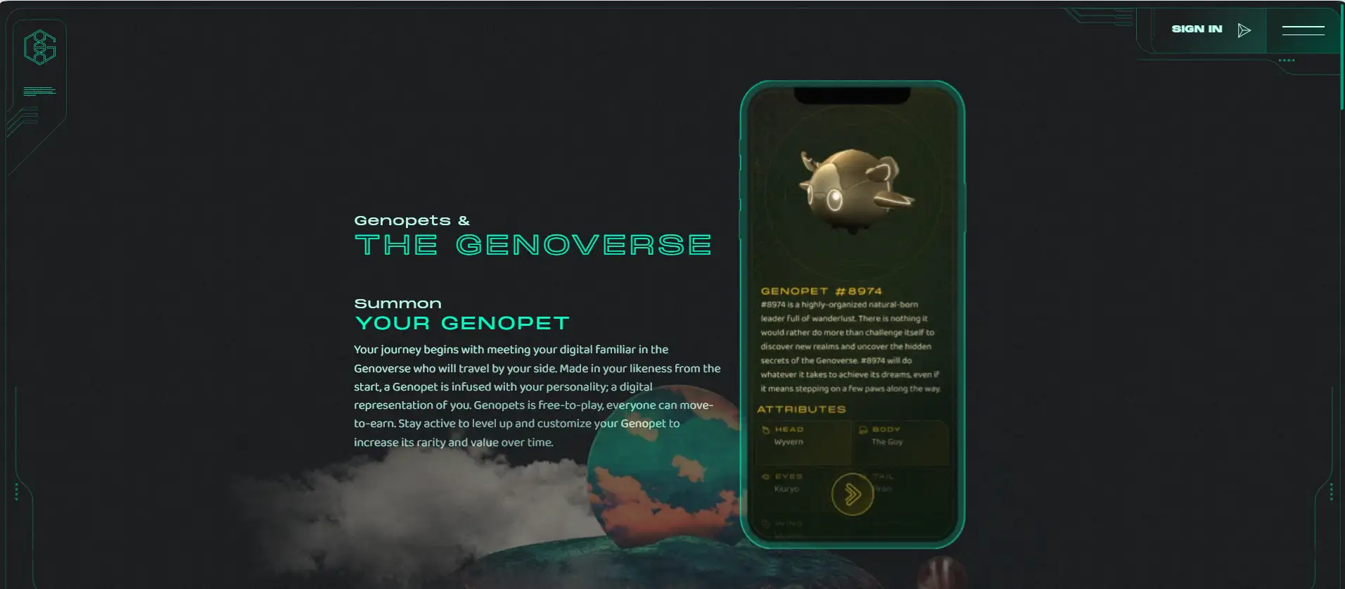 - Mint your first Genopet, a dynamic NFT that evolves based on your activity.