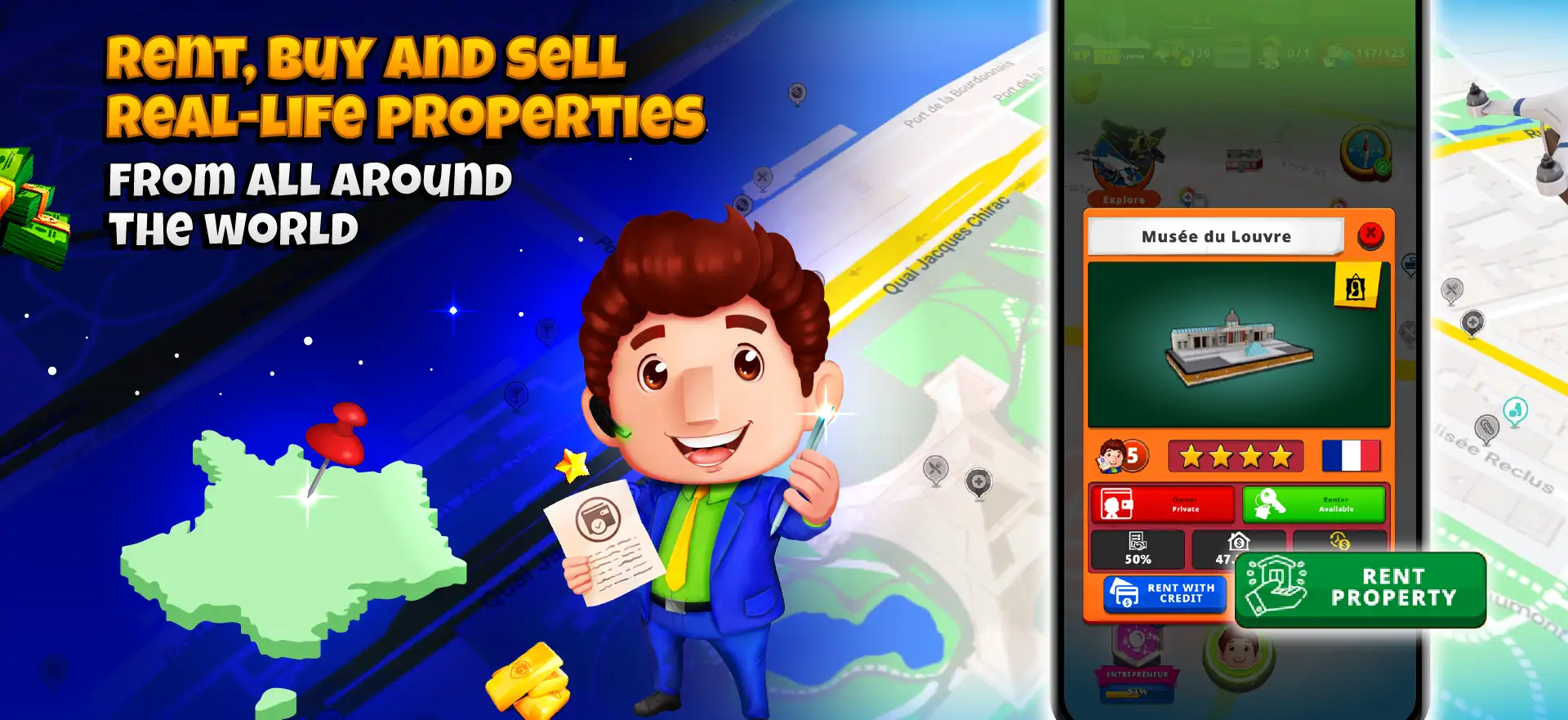Yes! In Geopoly, you can purchase, upgrade, and trade virtual properties that correspond to real-world landmarks. This unique feature allows you to invest in and manage digital versions of famous locations.