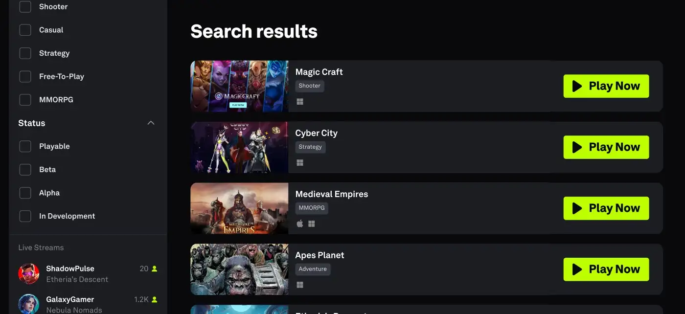 - Explore the game library within the launcher. You can use the search bar or browse the categories to find Web3 games that interest you.