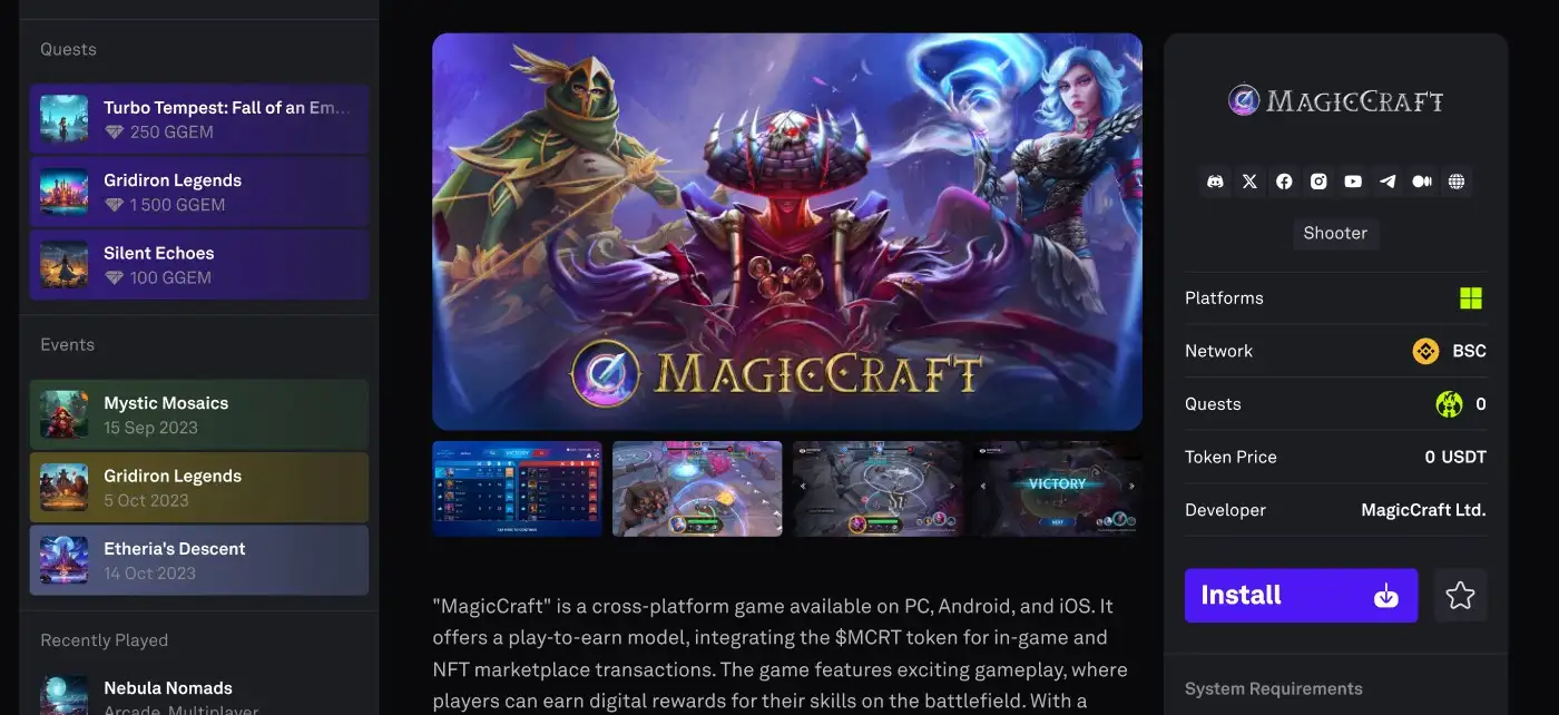 GGEM acts as a launcher, not a singular game, meaning the gameplay details vary depending on the games users choose to play on the platform. However, the launcher is designed to support a wide variety of Web3 game genres. These include play-to-earn (P2E) games, where users earn in-game rewards that can be tokenized and traded on the blockchain, as well as decentralized finance (DeFi) games, which incorporate financial elements like staking and lending into the gameplay. Some of the most popular types of games on GGEM include MMORPGs (Massively Multiplayer Online Role-Playing Games), strategy games, and collectible card games, all built on blockchain infrastructure.