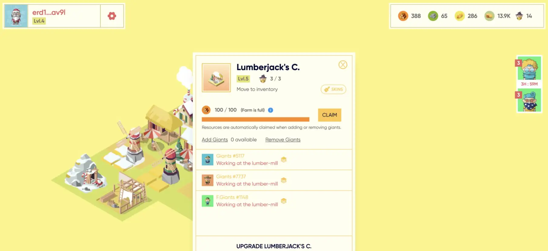 - Giants Village has a dynamic in-game economy where players can trade resources and items directly. The use of the $Giant token facilitates these transactions, ensuring a seamless and secure trading experience.