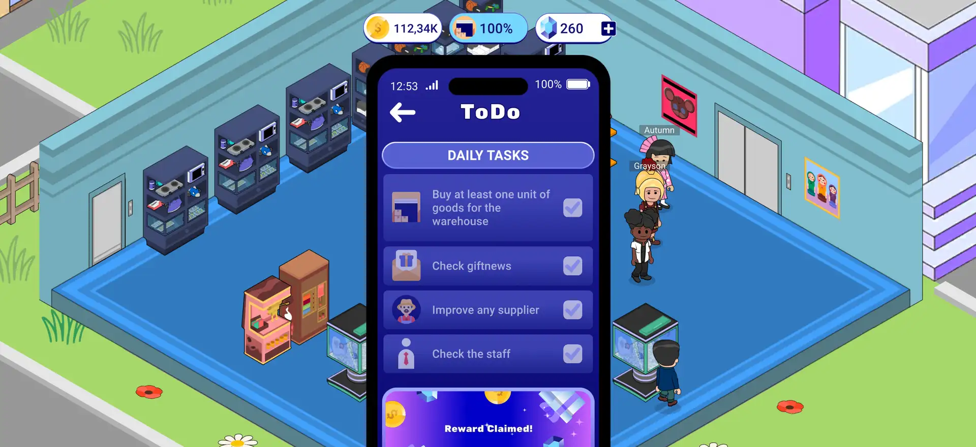 2. Tycoon Game – A seasonal play-to-earn simulator where managing your virtual empire generates additional APs and bonuses, linking gameplay directly to ecosystem rewards.