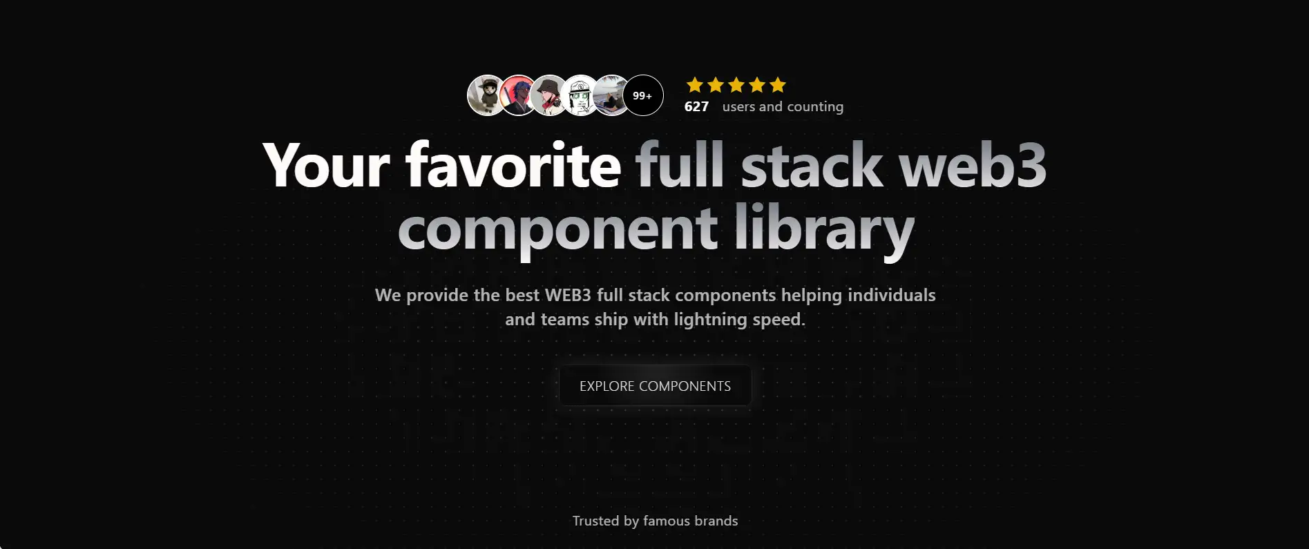 - Full-Stack Web3 Components: Not just UI — each component includes built-in logic for wallet connections, smart contracts, and data fetching.