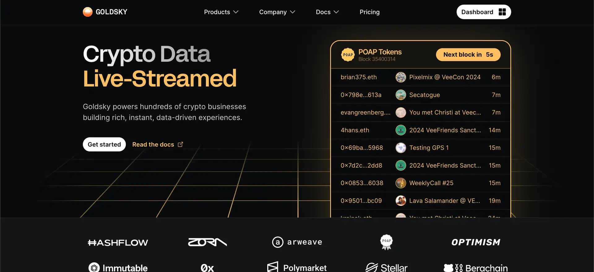 Goldsky provides a robust, developer-centric platform for accessing and managing blockchain data, positioning itself as an essential tool in the Web3 development ecosystem. The platform offers two primary products: Subgraphs and Mirror. Subgraphs provide developers with a zero-maintenance endpoint for live blockchain data. This product is designed to eliminate the need for developers to manage their own data indexing infrastructure, which can be resource-intensive and complex. By leveraging Subgraphs, developers can focus on building their applications rather than worrying about the backend infrastructure necessary for data retrieval.