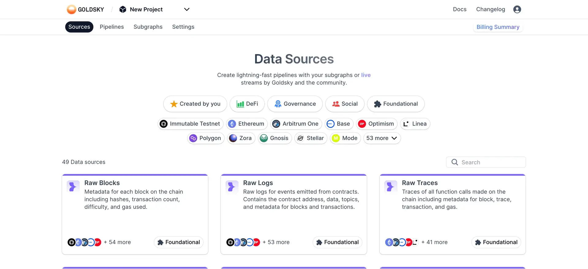 - Set Up Endpoints: Use the intuitive interface provided by Goldsky to set up your data endpoints. These endpoints can be integrated with your application, database, or any other system that requires blockchain data.