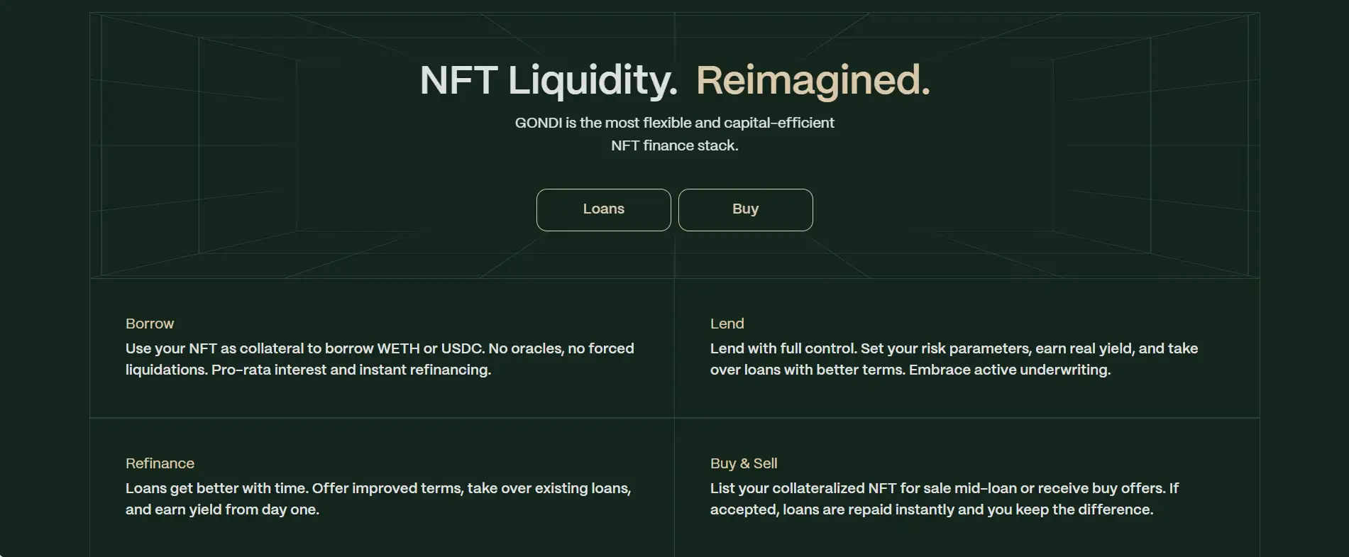 Launched to address inefficiencies in existing NFT lending markets, GONDI provides a completely reimagined finance protocol tailored specifically for non-fungible assets. Unlike traditional platforms, GONDI introduces a model that eliminates oracle dependencies, removes automated liquidations, and places negotiation power directly in the hands of users. The platform enables NFT holders to borrow stablecoins like WETH or USDC using their NFTs as collateral. Interest accrues only for the time borrowed, thanks to its innovative pro-rata interest model.