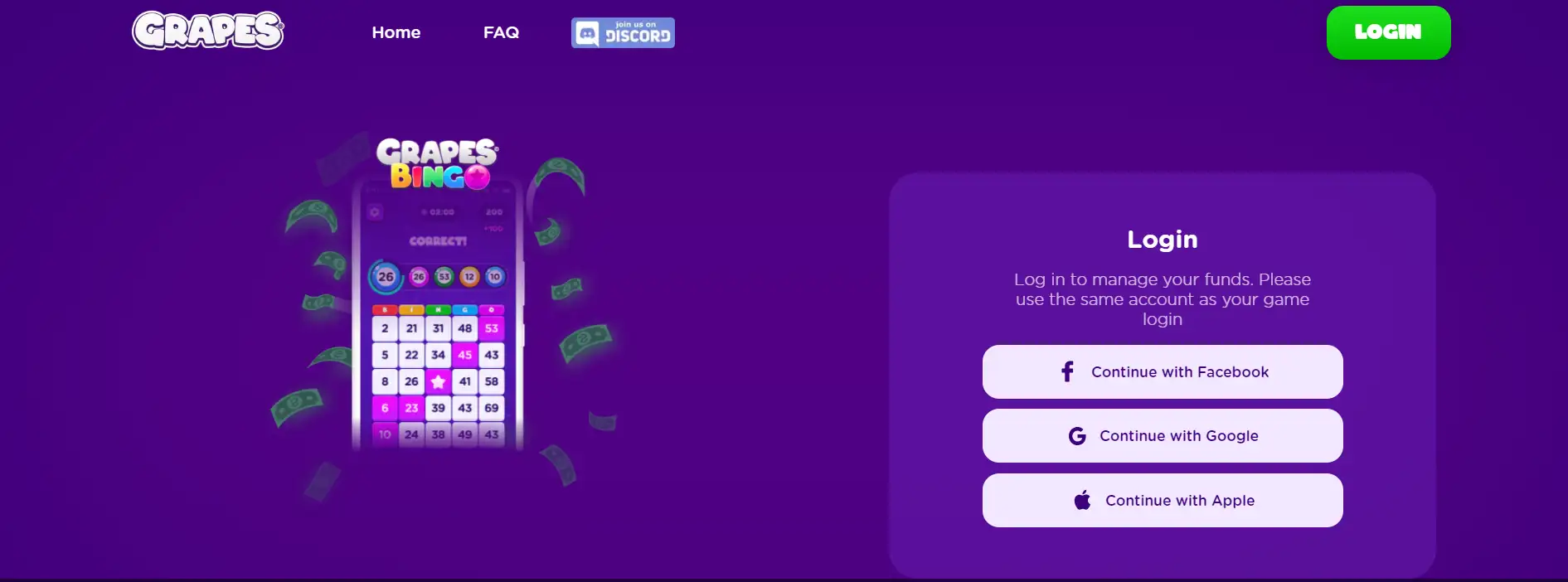Getting started with Grapes Bingo is quick and easy. Follow these steps to begin: