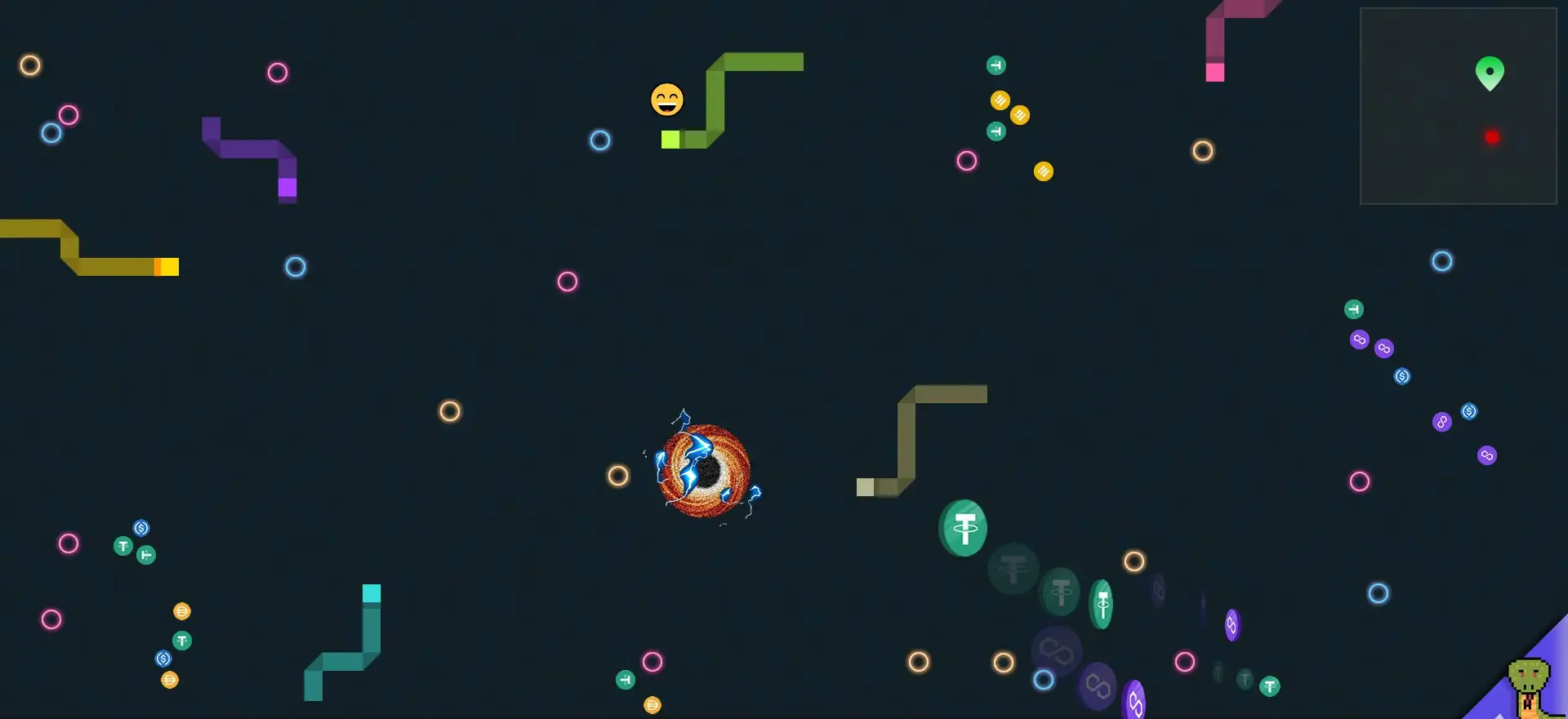 Players control their snakes, collect tokens by defeating opponents, and navigate the game map to find black holes for securing their earnings. The gameplay is dynamic, with constant challenges that keep players engaged and motivated to improve their skills. The addition of various power-ups and strategic elements adds depth to the gameplay, making it more than just a simple collection game.