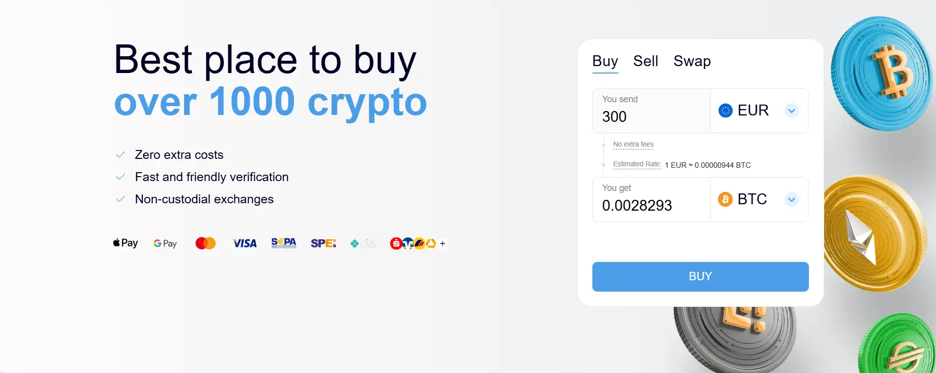 - Support for 1,000+ Cryptocurrencies: Users can buy, sell, or swap a wide array of digital assets, including popular tokens like BTC, ETH, XMR, and niche altcoins like TRUMP and TIPSY.