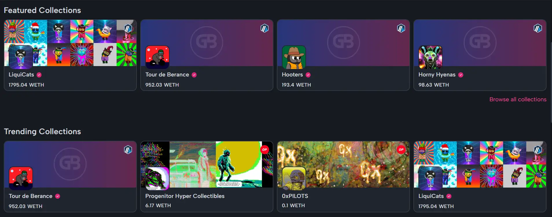 - Browse Collections: Explore trending and featured gNFT collections in the Gallery. You can buy directly using $WETH.