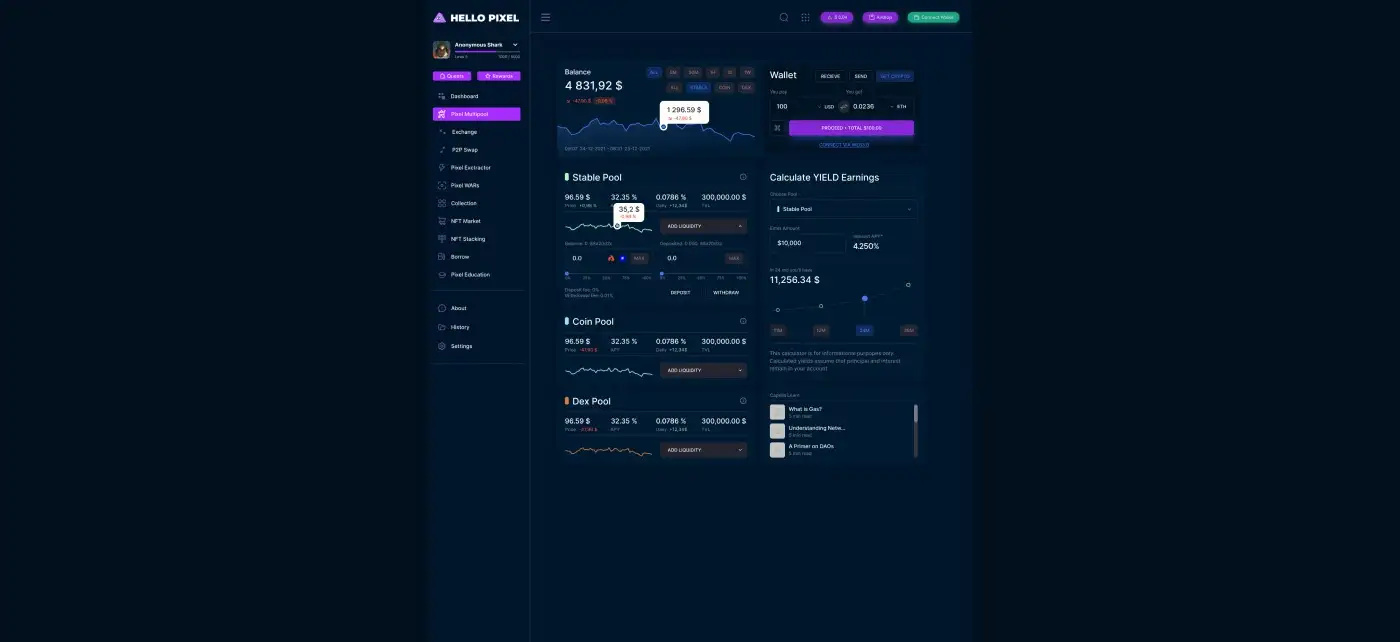 - Use DeFi Tools: Explore the DeFi tools offered by Hello Pixel, such as the DEX and liquidity pools, to manage and grow your digital assets effectively.