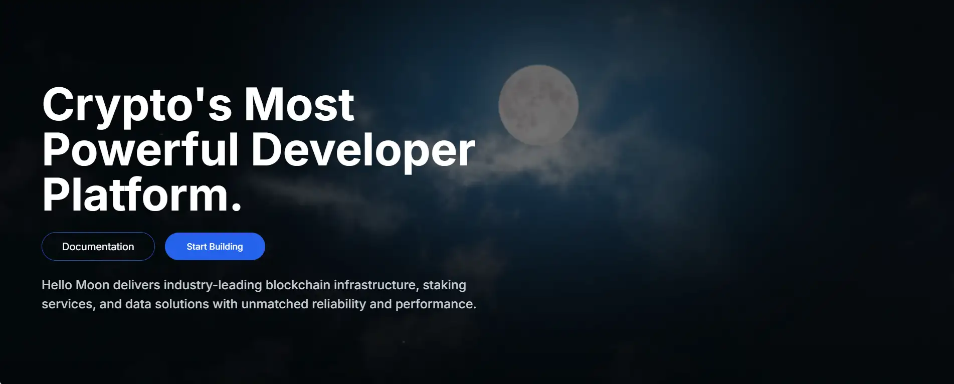 - Visit the Website: Go to HelloMoon.io and click on "Start Building" or "View Documentation".