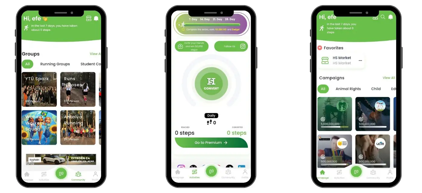 - Charitable Contributions: Users can donate their earned HS points to support a wide range of charitable organizations, making their physical activity meaningful and impactful.