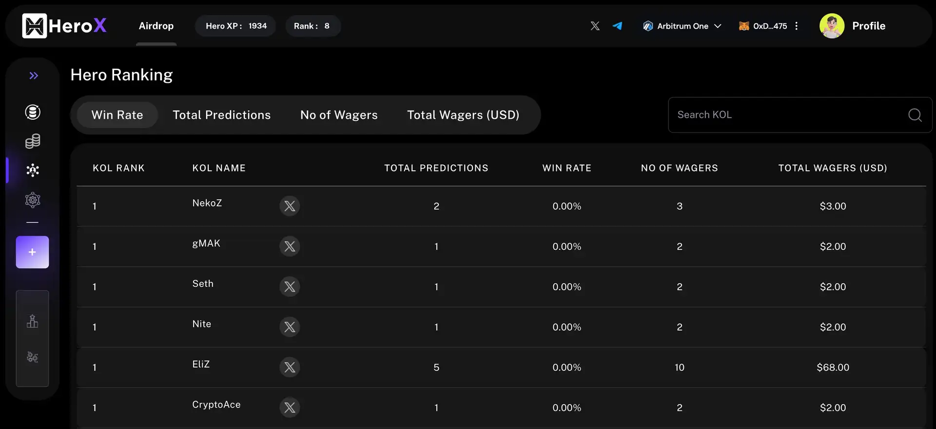 - Trade Hero Keys: Analyze KOL predictions and trade Hero Keys based on their performance. Hero Keys represent the influence and accuracy of KOLs and can be traded on the platform's marketplace for profit.