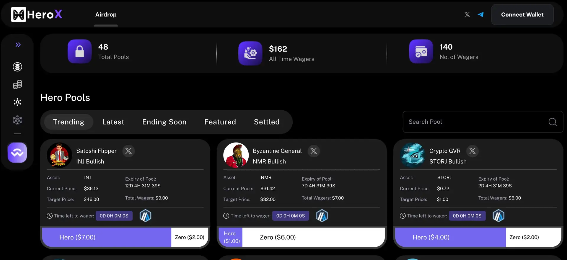 - Hero Pools: Users can stake tokens and vote on influencer predictions, with winners earning from the pool. This feature promotes active participation and rewards accurate predictions.