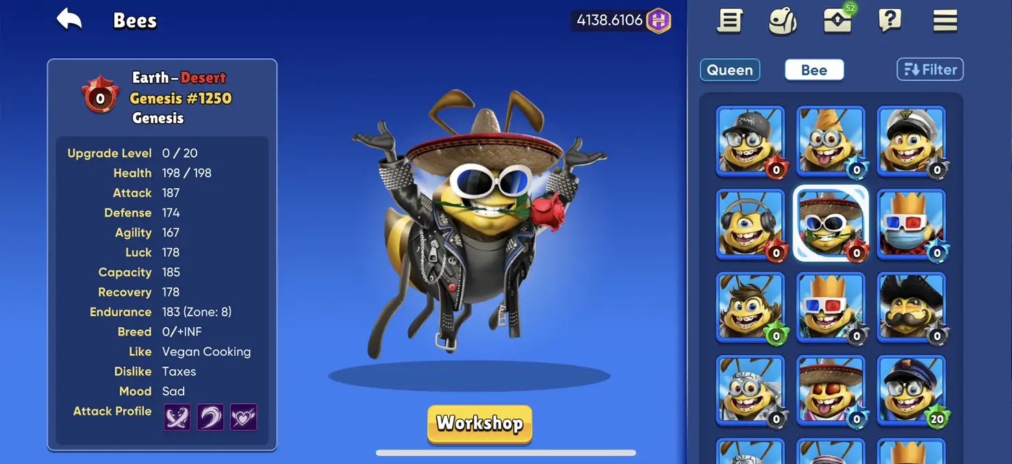 - Expand Your Swarm: Breed new bees using the Honey and shards you collect. Each new bee can bring unique traits that enhance your hive's capabilities.