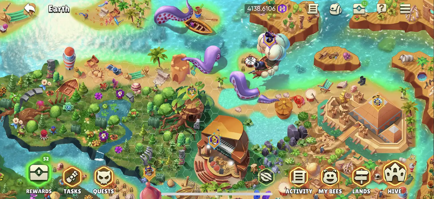 - Harvesting: Players collect Honey, the basic resource required for various in-game activities.