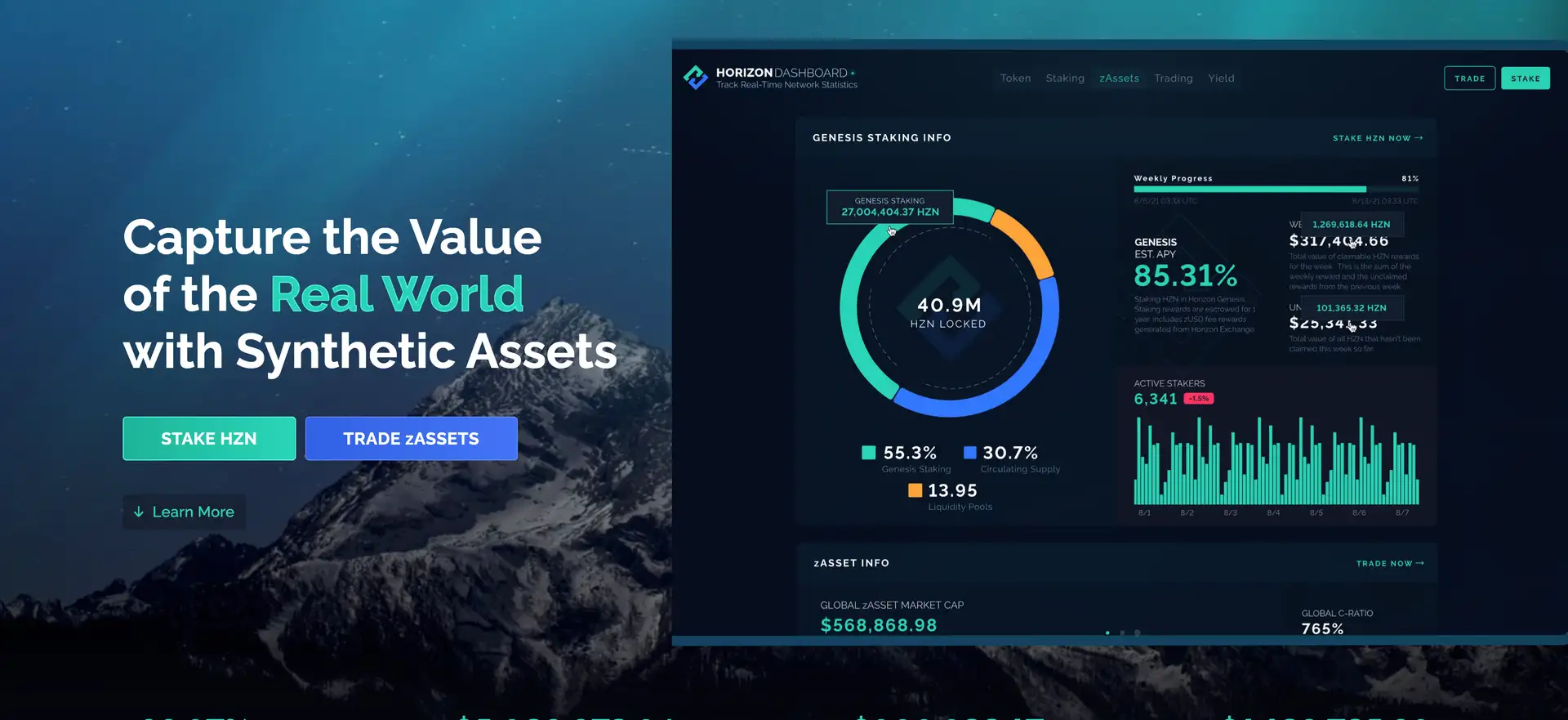 - Staking Rewards: Users can stake HZN tokens to mint synthetic assets and earn rewards from transaction fees, incentivizing participation and contributing to the platform's security and growth.