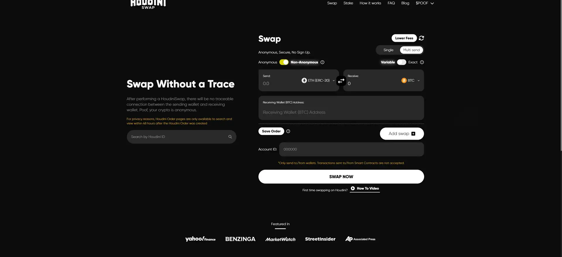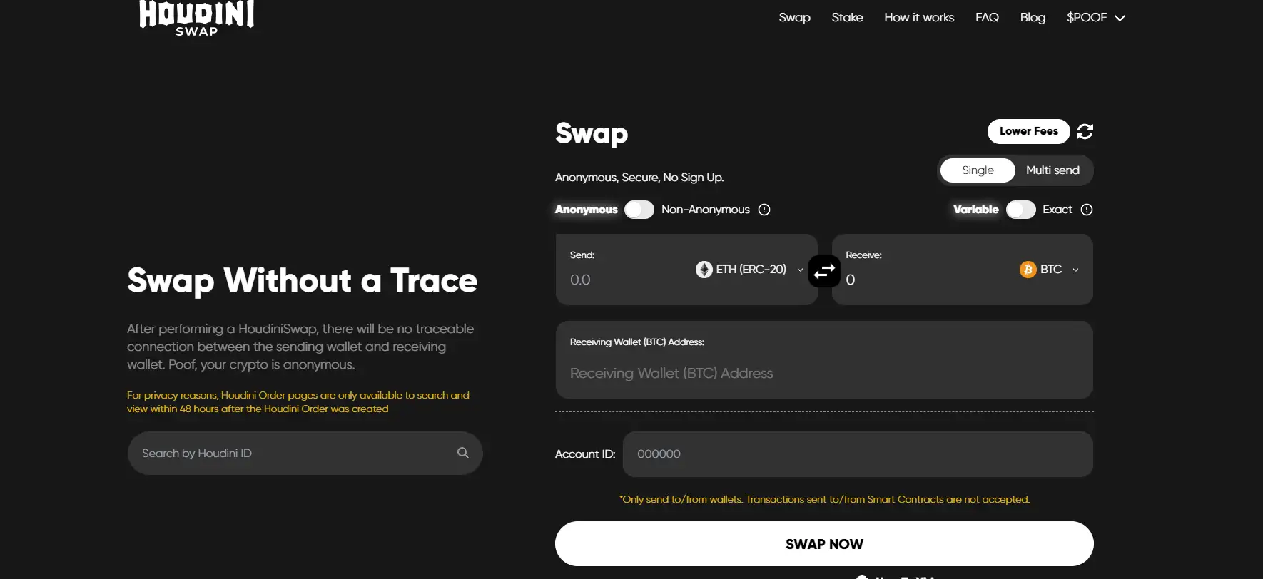 Houdini Swap is a revolutionary platform designed to bring privacy and anonymity to cryptocurrency transactions. In an era where privacy concerns are at the forefront of digital interactions, Houdini Swap offers a solution that ensures users can engage in crypto transactions without revealing their identities. The platform leverages advanced privacy technologies, including the Tor network, to obscure transaction paths and protect user identities. Houdini Swap is particularly valuable for users who need to conduct transactions securely across different blockchains, offering a unique solution in a market where privacy is often compromised.