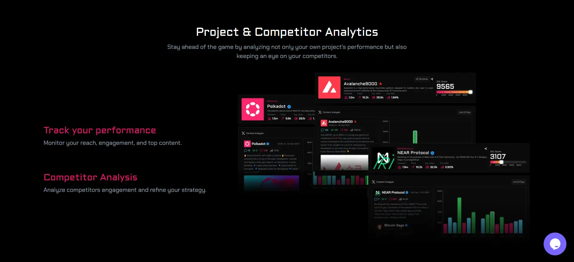 - Competitor Analysis: Compare your project's visibility, content reach, and campaign ROI against others in your niche.
