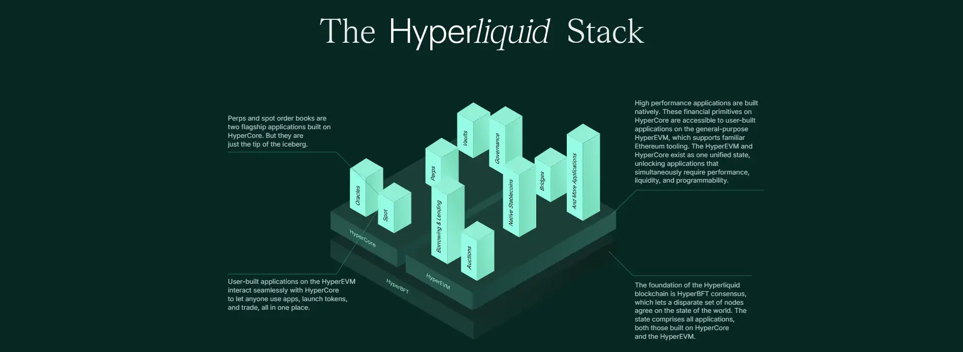 Unlike fragmented systems that split liquidity and performance across chains and layers, Hyperliquid integrates trading, building, and governance into a single protocol. Through the combination of HyperCore (financial primitives like perpetuals and spot markets) and HyperEVM (a general-purpose smart contract layer), Hyperliquid unlocks a powerful composable ecosystem that’s designed for both performance and programmability.