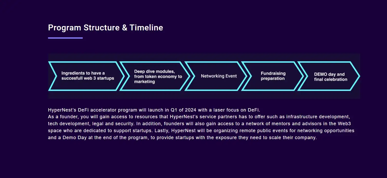 The accelerator program at HyperNest is structured to provide end-to-end support over a 12-week period, during which selected startups receive tailored guidance on a wide range of topics, including fundraising, tokenomics, legal considerations, and go-to-market strategies. This program is bolstered by the involvement of industry veterans and leaders from renowned DeFi projects like Aave, SushiSwap, and Chainlink, who serve as mentors and advisors to the participating startups.
