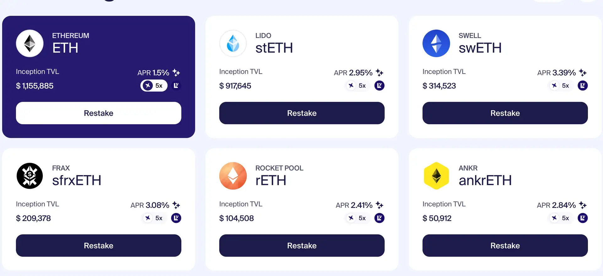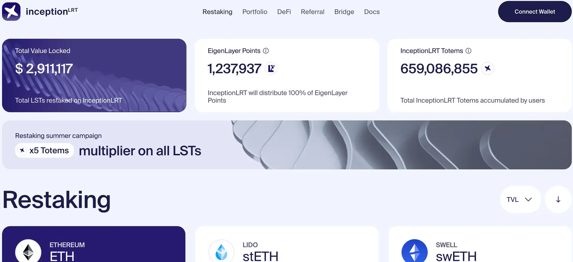 - Integration with EigenLayer: Through its partnership with EigenLayer, InceptionLRT allows users to earn additional rewards by securing multiple networks.