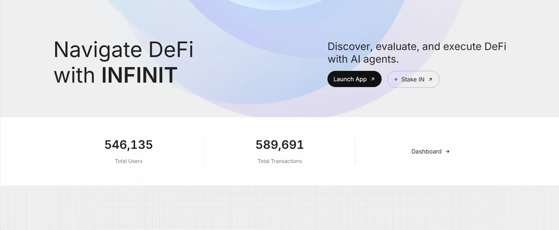 INFINIT is an advanced AI-powered DeFi infrastructure platform designed to simplify and enhance user interaction with decentralized finance. Built to be more than just a dashboard or aggregator, INFINIT acts as an intelligent execution layer, enabling users to discover, evaluate, and execute complex DeFi strategies through a single, streamlined interface. By leveraging AI agents, INFINIT minimizes the barriers associated with managing multi-protocol and multi-chain operations, ensuring seamless interaction with the DeFi landscape.