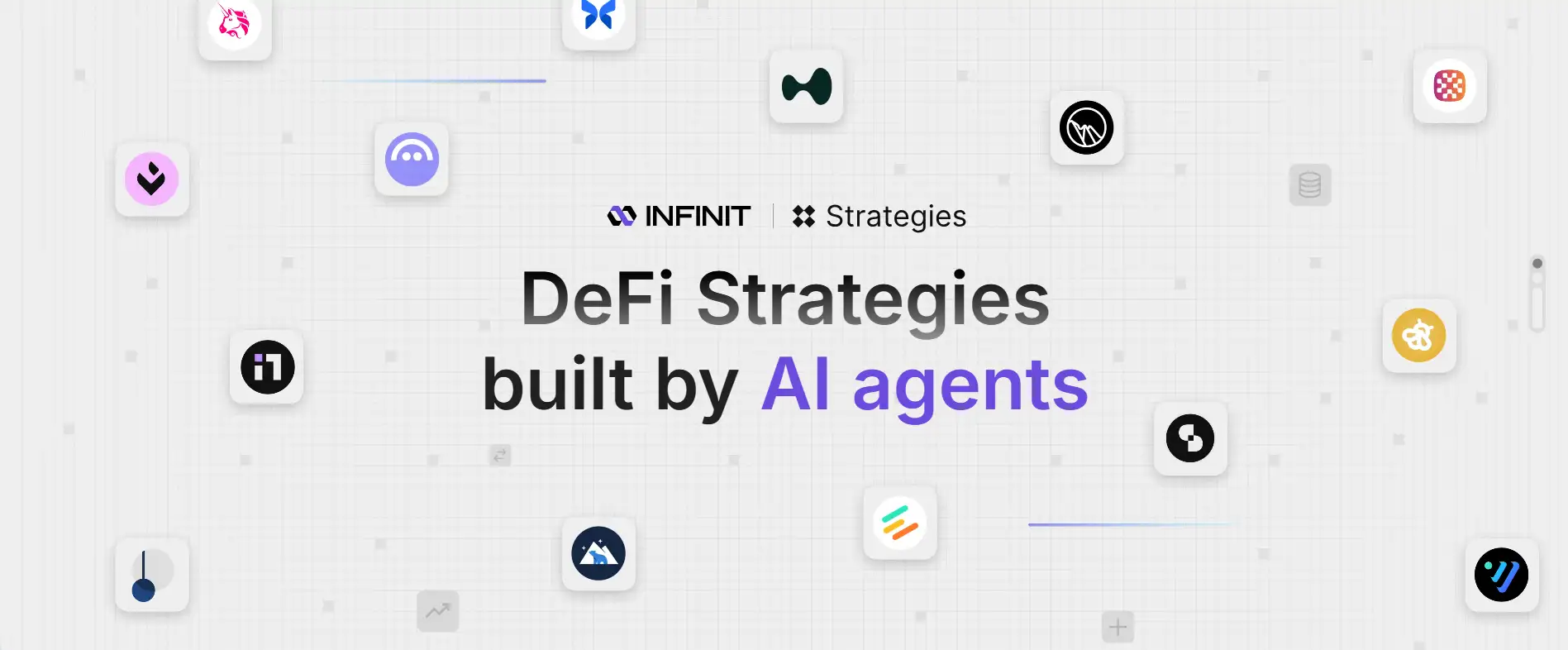 At its core, INFINIT V2 provides a seamless interface for turning multi-step DeFi operations—like swaps, loans, and leveraged positions—into one-click strategies. These can be created by experienced strategy developers and easily executed by everyday users without giving up custody of their assets. The system is powered by AI Agents that interpret, build, and execute DeFi strategies across protocols and chains such as Arbitrum, Base, Aave, Pendle, and more. This system uses standards like EIP-7702 to streamline execution, creating a truly frictionless DeFi experience.
