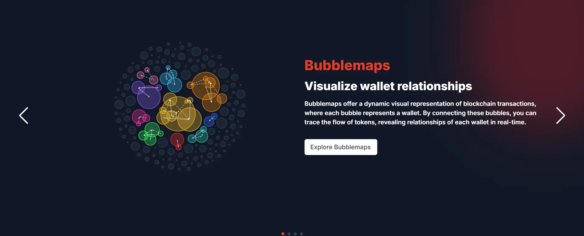 - BubbleMaps Visualization: View on-chain transactions through interactive bubble diagrams, making it easier to spot large holders and suspicious patterns.
