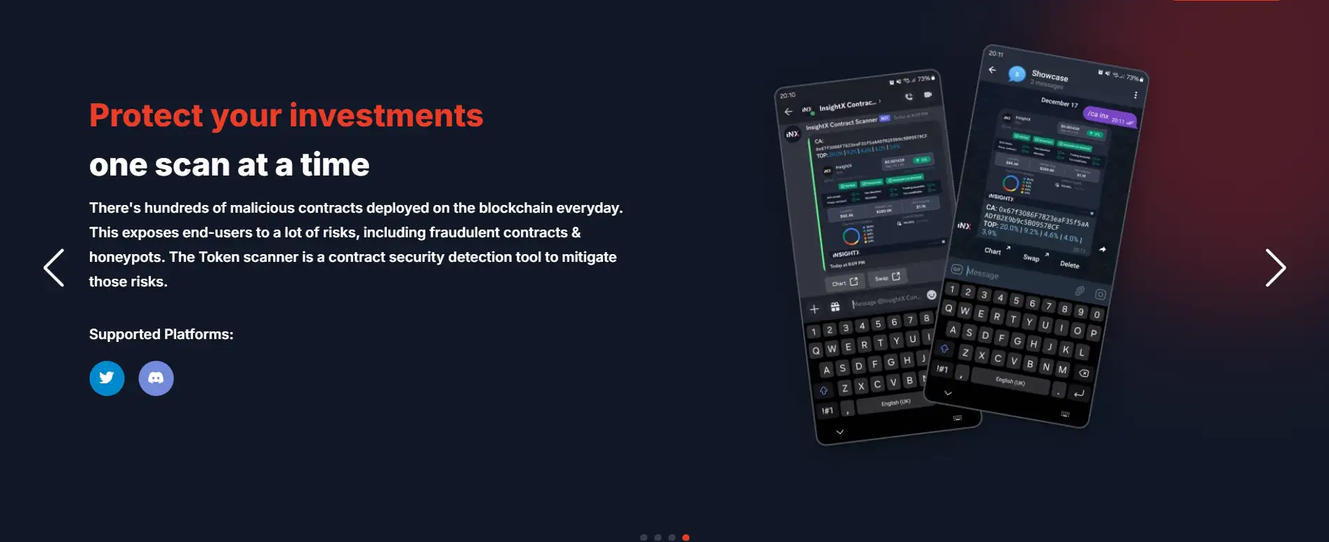 InsightX provides a Contract Scanner that uses AI-enhanced detection to flag malicious tokens and contracts. It scans for indicators like unlocked liquidity, honeypot behavior, unverified contracts, and code-level vulnerabilities—helping you avoid scams before you ever buy. The tool is accessible via the web app, Telegram, and Discord, making protection available anywhere you trade.