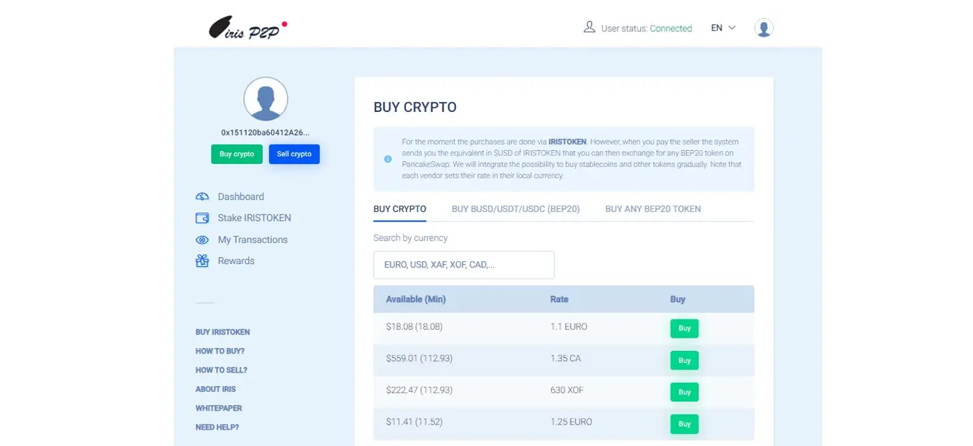 IrisP2P was developed to create a decentralized platform that enables direct peer-to-peer cryptocurrency transactions. The platform's core technology is built on blockchain, which ensures that all trades are transparent, secure, and immutable. IrisP2P supports a variety of cryptocurrencies, giving users the flexibility to trade different digital assets seamlessly.