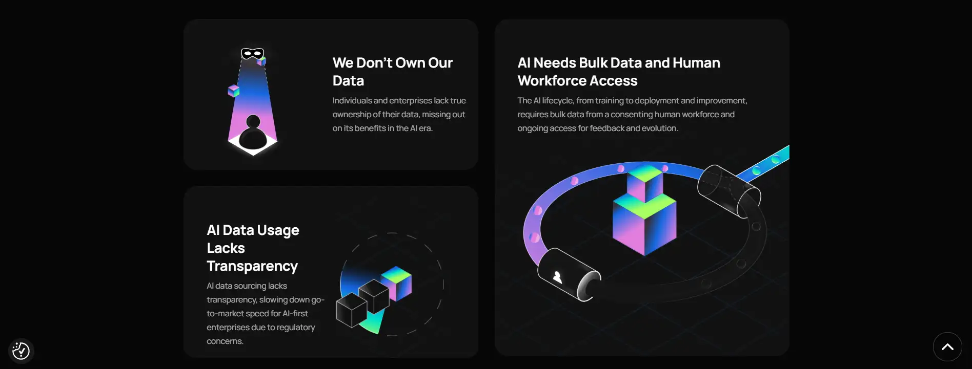 - Data Coalition DAOs: Users can launch and govern decentralized data communities that collect and broker bulk datasets for AI and Web3 companies.