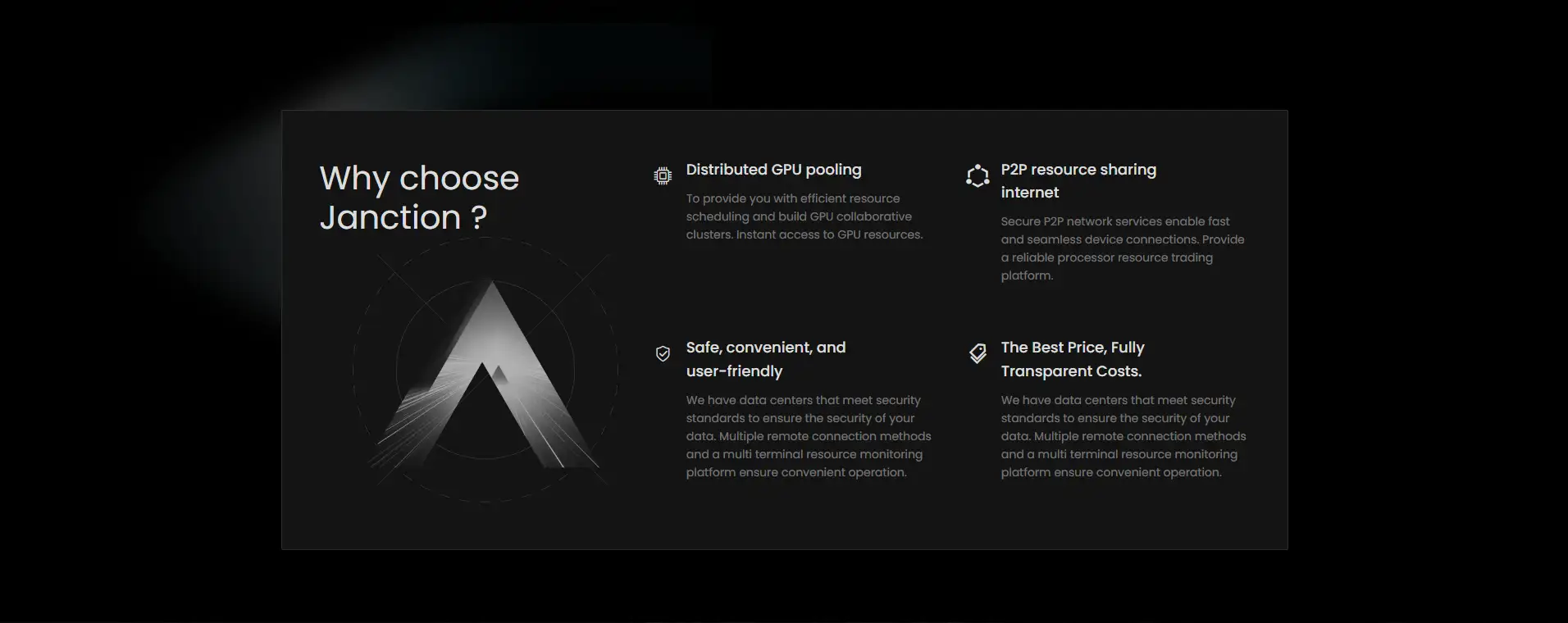 - Decentralized AI Cluster: Janction’s GPU pool system supports large-scale parallel computing, enabling AI model training and inference with optimized resource scheduling.