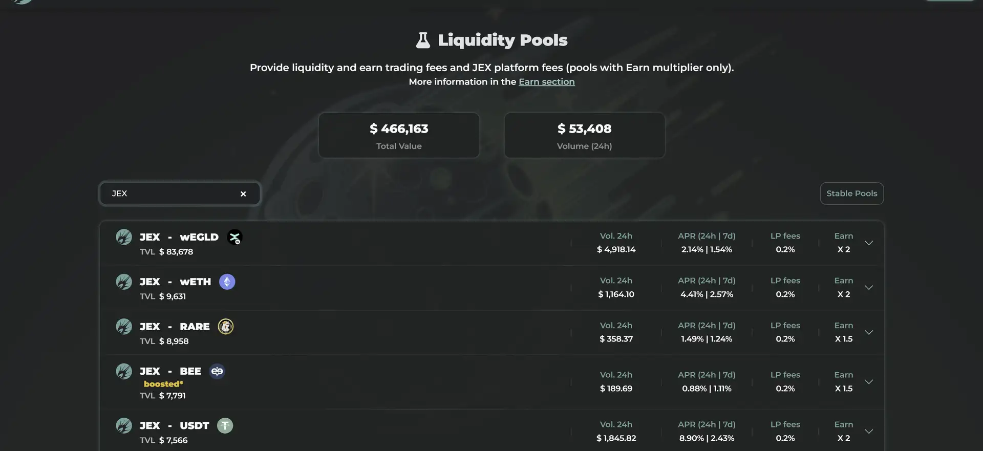 - Explore the Platform: Once your wallet is connected, navigate the platform to explore its features. You can trade tokens, stake your JEX, or participate in governance.