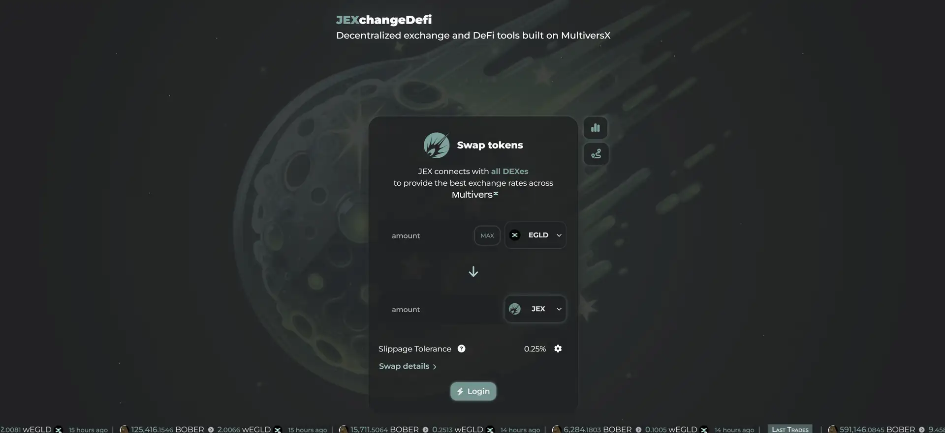 - MultiversX Integration: Built on the MultiversX network, JEXchange benefits from its high throughput, low latency, and secure infrastructure, ensuring a seamless trading experience.