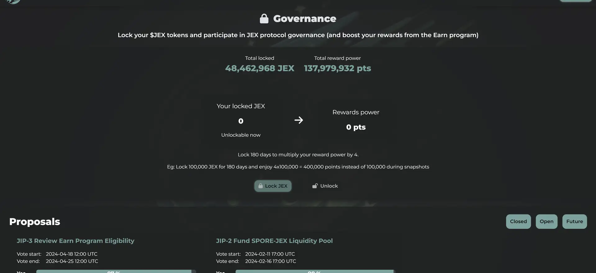 - Participate in Governance: Use your staked JEX tokens to vote on key proposals. This feature allows you to influence the platform’s future developments.