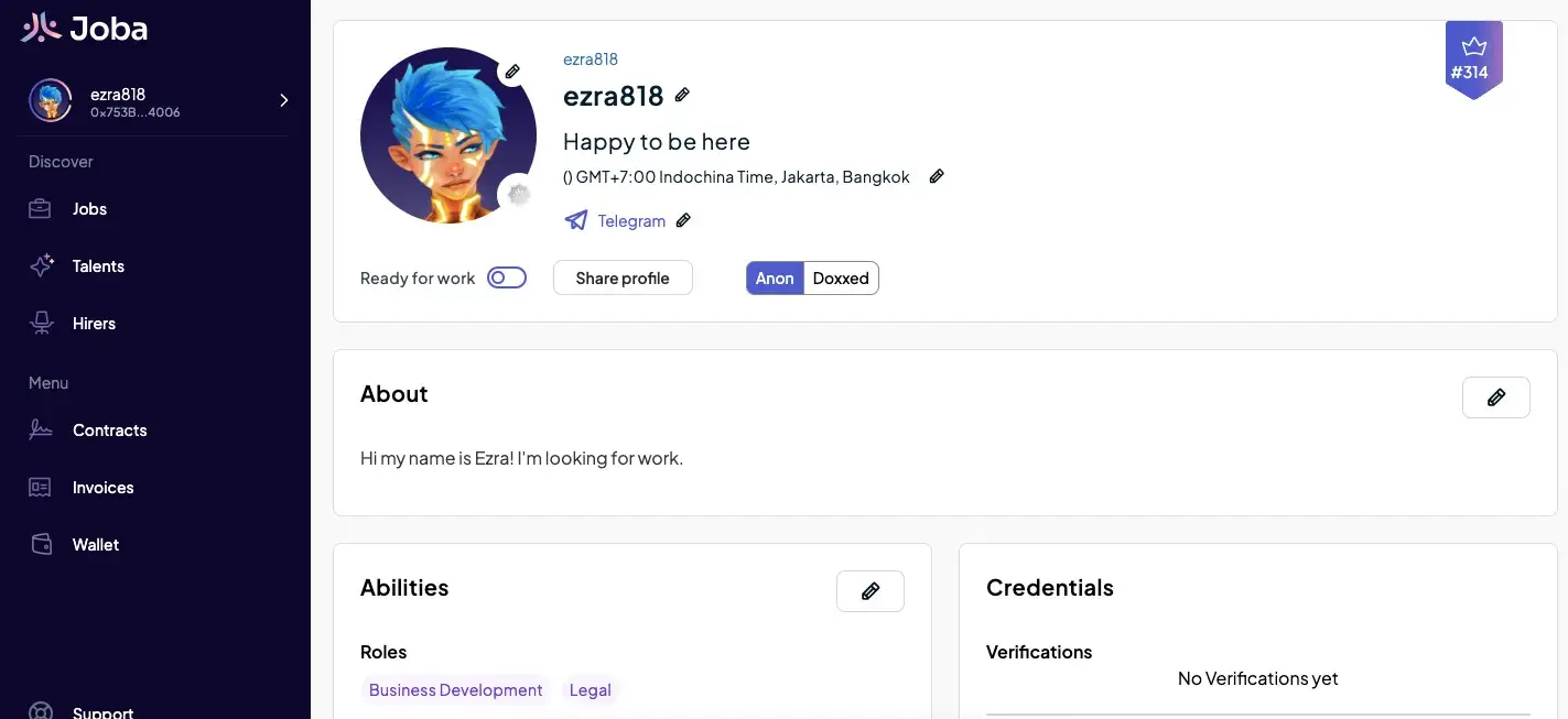 - Worker and Hirer Tools: Joba Network provides a suite of tools for both workers and employers. Workers can complete jobs and verify their experiences on the platform, while employers can post job listings, review candidates' verified credentials, and engage in secure transactions.