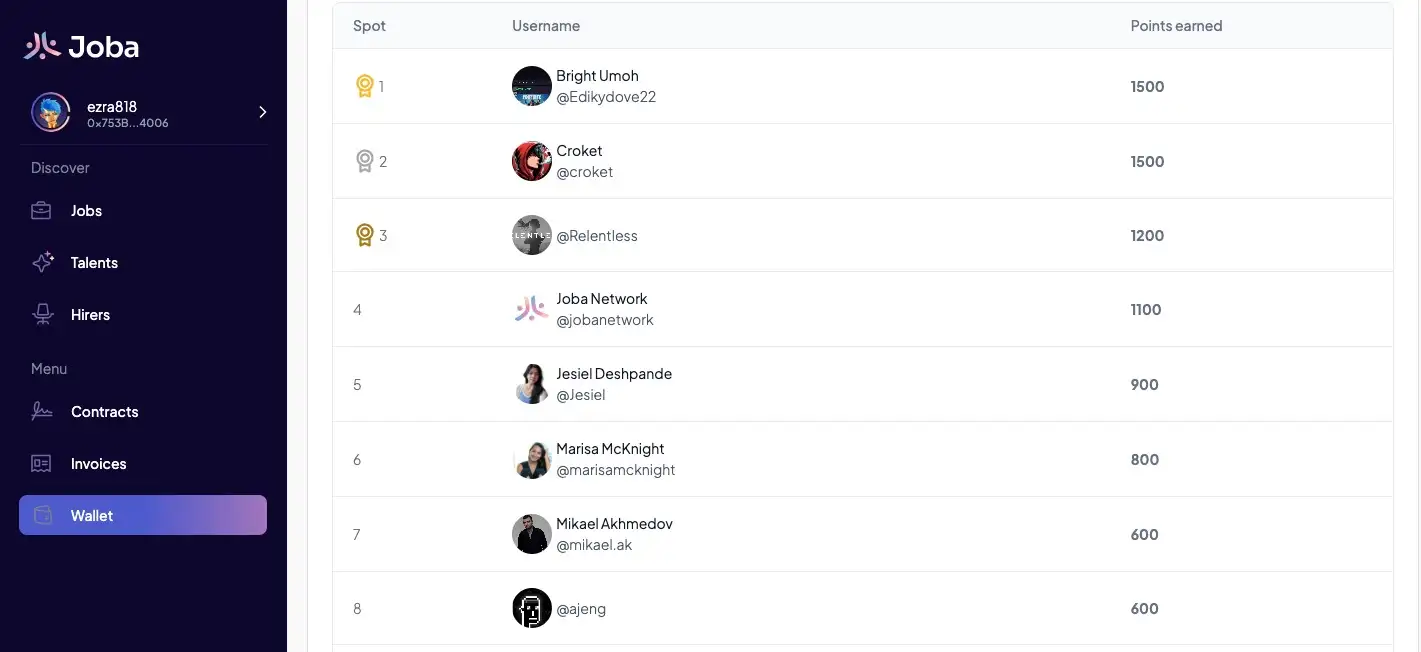 Joba Network stands out by focusing on the creation of a verifiable on-chain reputation that can be used to build borderless credit. Unlike other platforms that may simply connect freelancers with employers, Joba Network enables users to build a globally recognized reputation and credit score, which can be used to access jobs and financial services. The platform’s approach to democratizing professional opportunities is unique in the decentralized space.