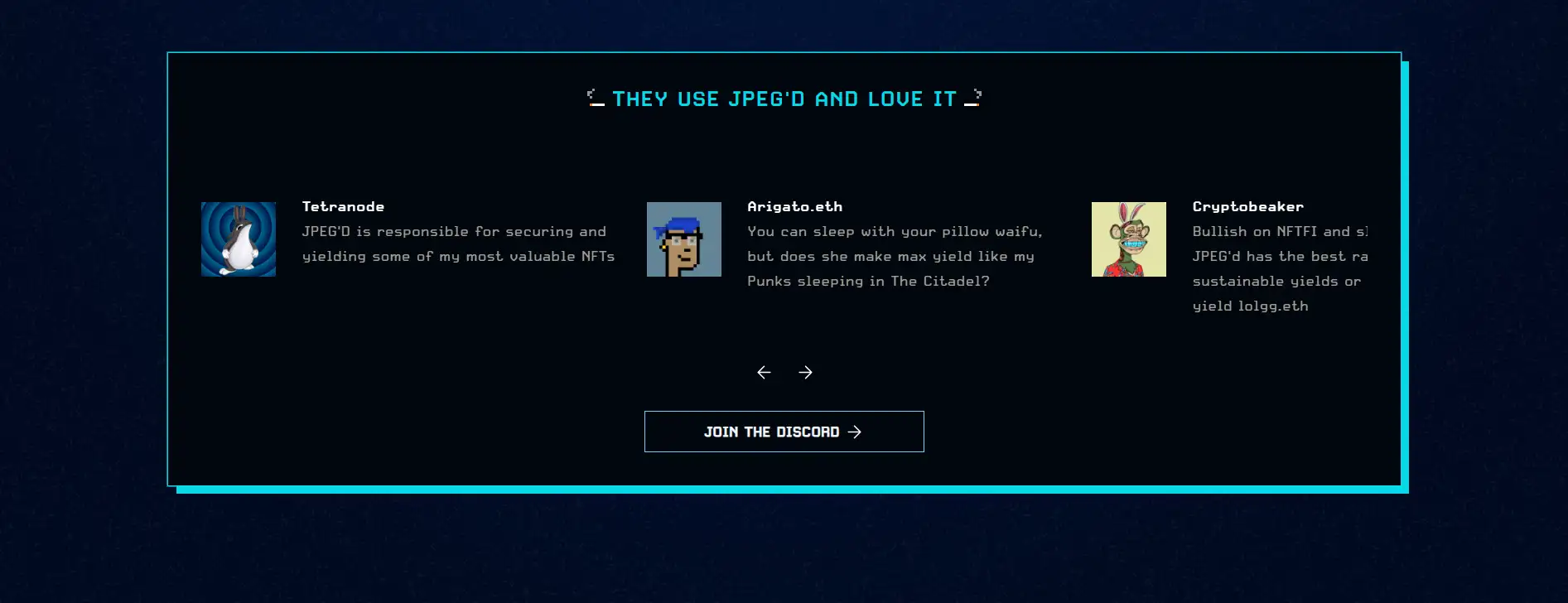 JPEG’d is a decentralized lending protocol that connects the worlds of DeFi and NFTs by allowing users to unlock liquidity from their non-fungible tokens without selling them. Through its novel Peer to Protocol lending model, JPEG’d enables borrowers to use supported NFT collections as collateral to mint synthetic assets like pETH and PUSd, while still retaining ownership of their digital collectibles.