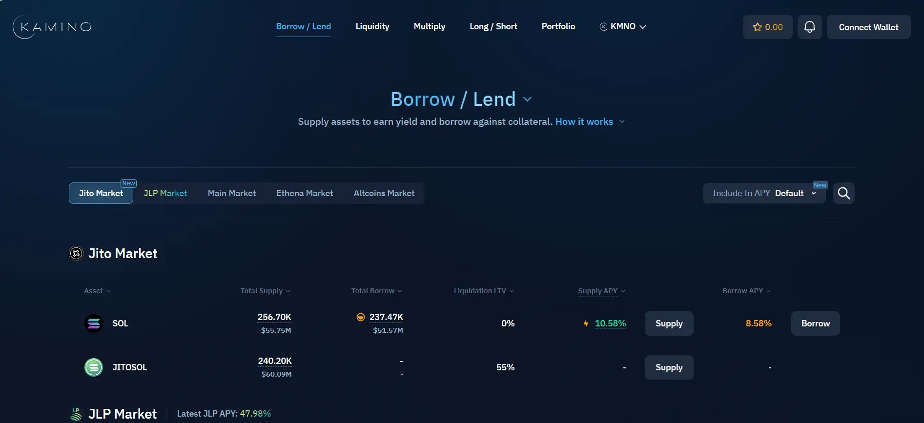 - Access the Platform: Visit Kamino Finance and connect your wallet to unlock its features.