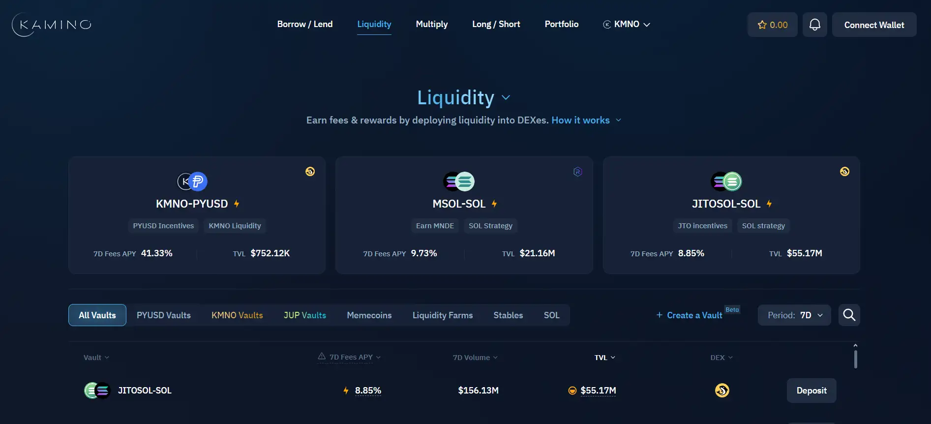 - Passive Income Opportunities: Users can earn consistent returns by simply depositing assets into Kamino’s vaults, with no manual intervention required.