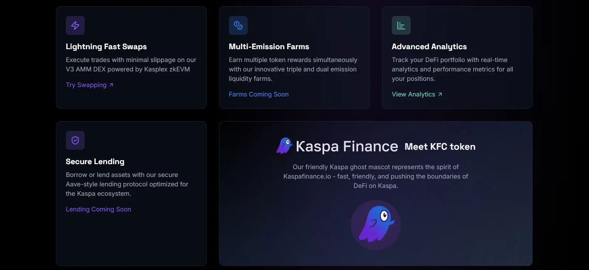 With Kaspa Finance, users can trade, farm, analyze, and launch tokens-all in one place.