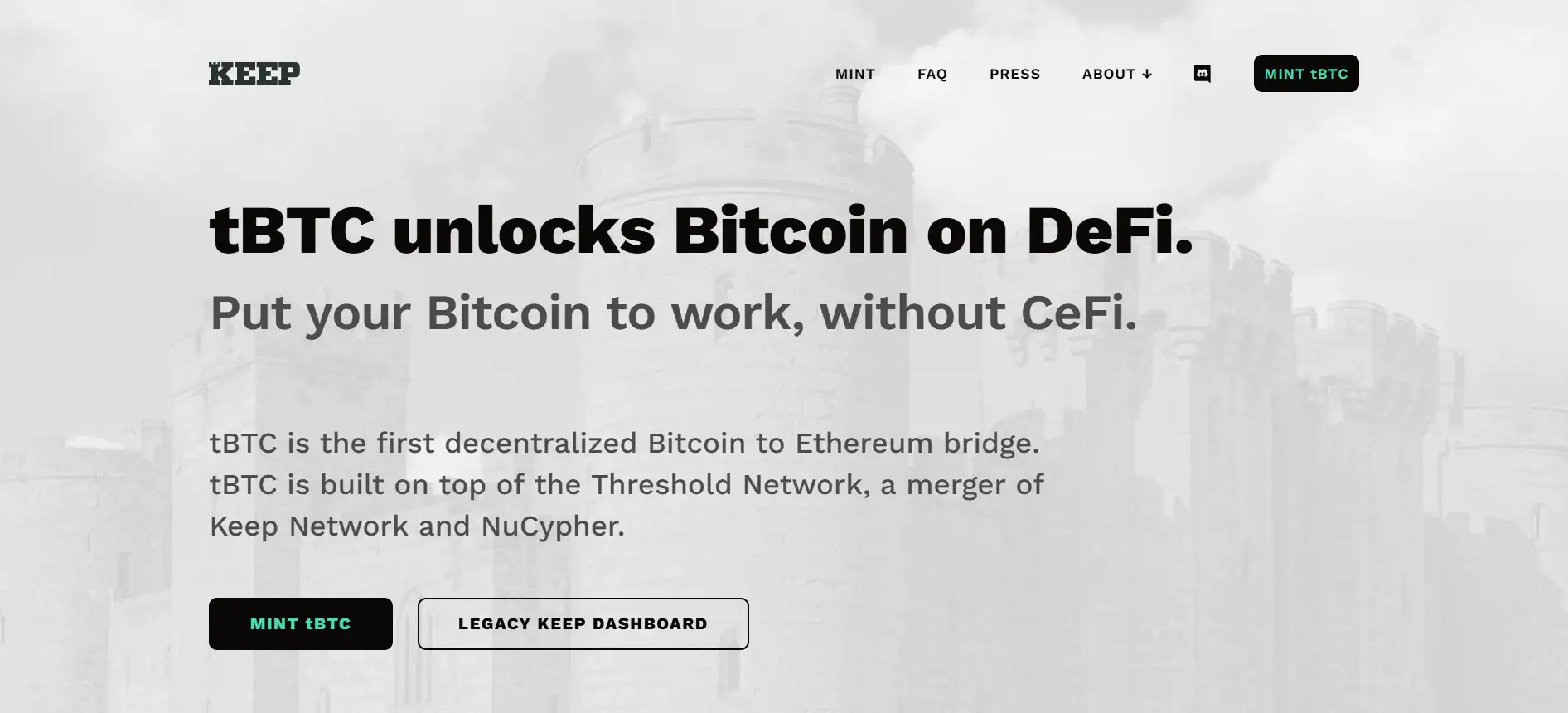 - Decentralized BTC Bridge: Keep Network powers tBTC, the first and only fully decentralized, permissionless bridge between Bitcoin and Ethereum.