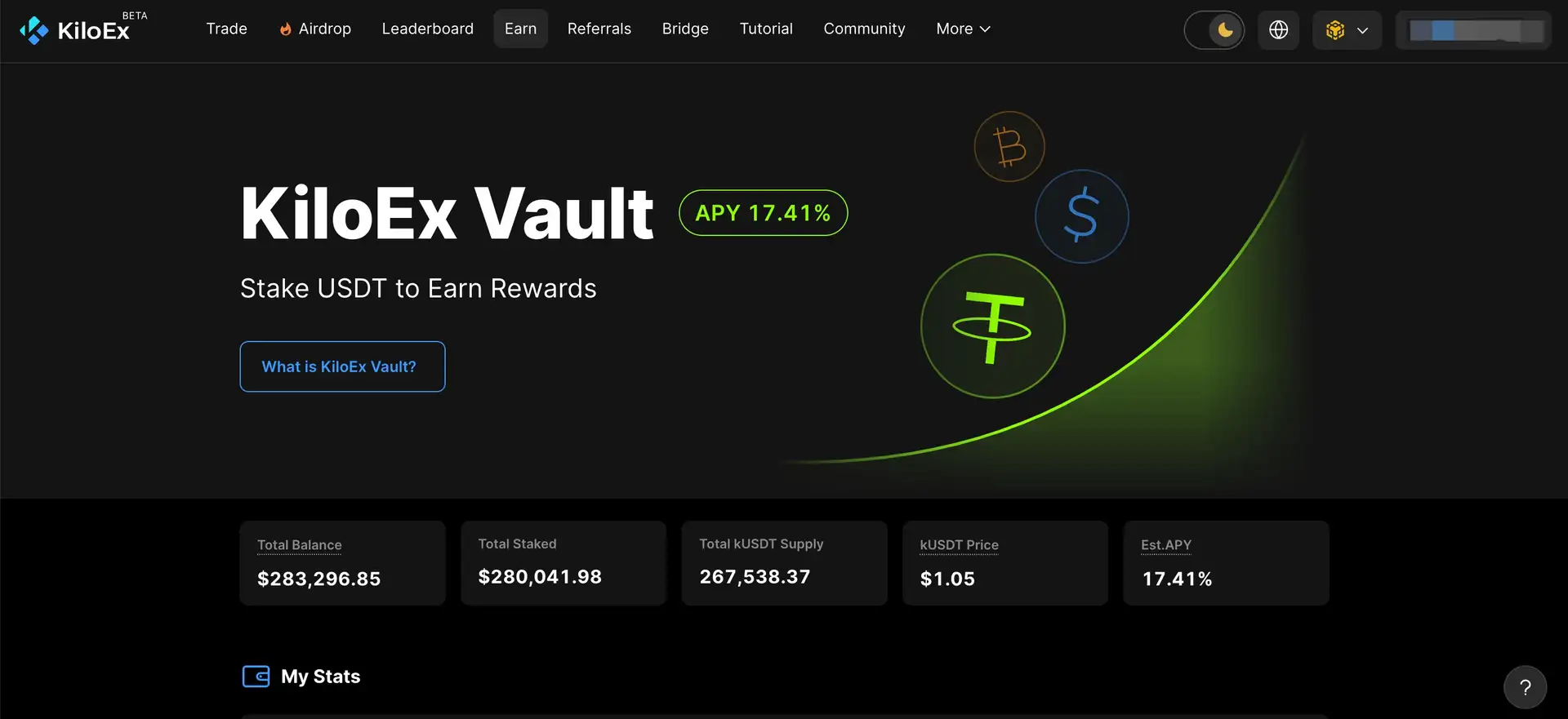KiloEx Vaults offer a unique staking mechanism where users can lock their assets to earn yields, tailored to both conservative and aggressive strategies. Unlike traditional staking, Vaults allow for flexible terms and higher potential rewards, making it a dynamic option for maximizing returns. Explore the Vault options on the KiloEx platform.